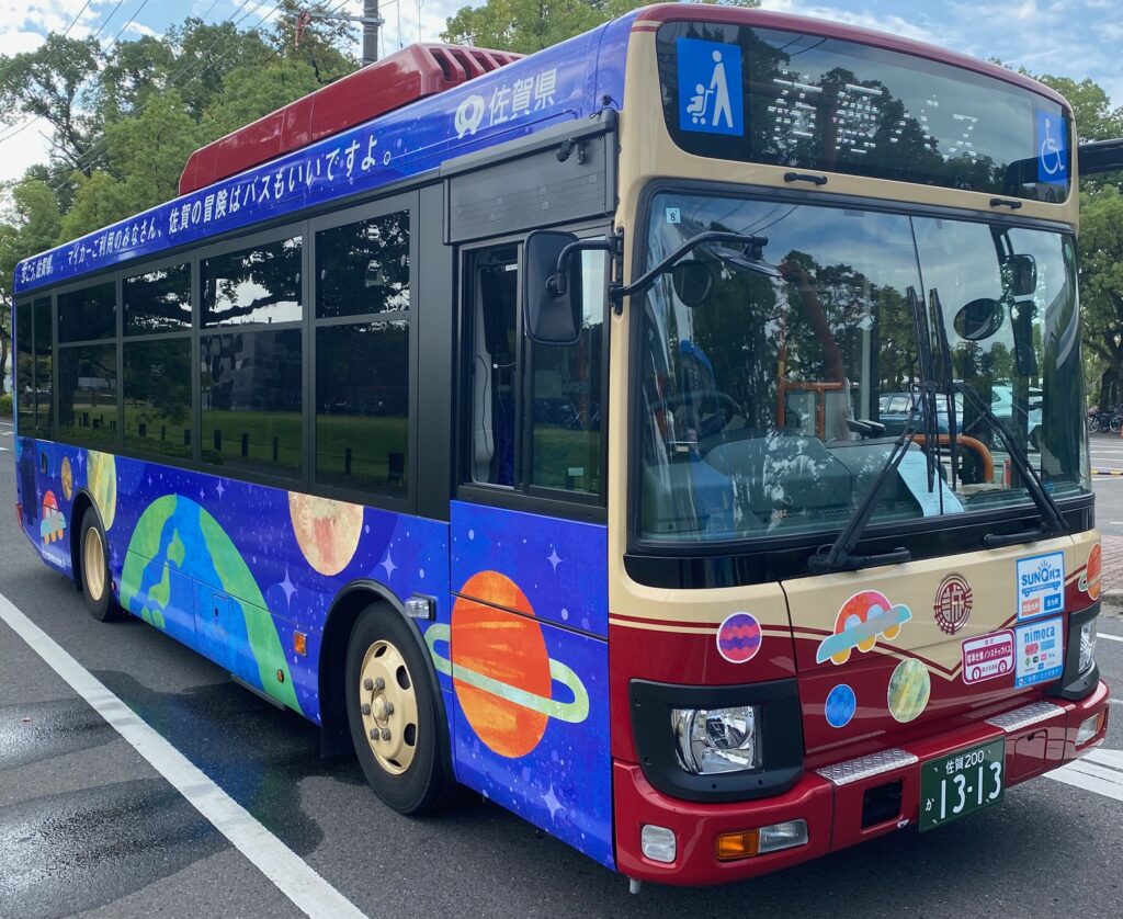 佐賀さいこうフェスの会場でお披露目した「SAGAぼうけんバス」3台が今週から各路線を運行中です!