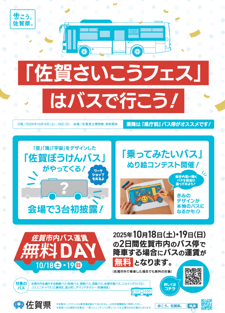 当日は、佐賀市内で降車する際にバスの運賃が無料となります。